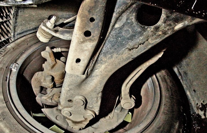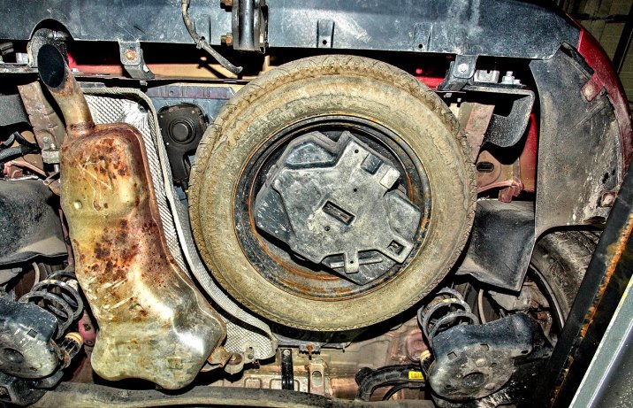 Jedyne, co atakuje tu rdza, to koło zapasowe. Ranty felgi potrafią być tak skorodowane, że z opony schodzi powietrze.