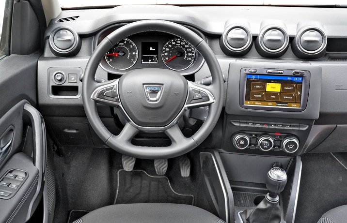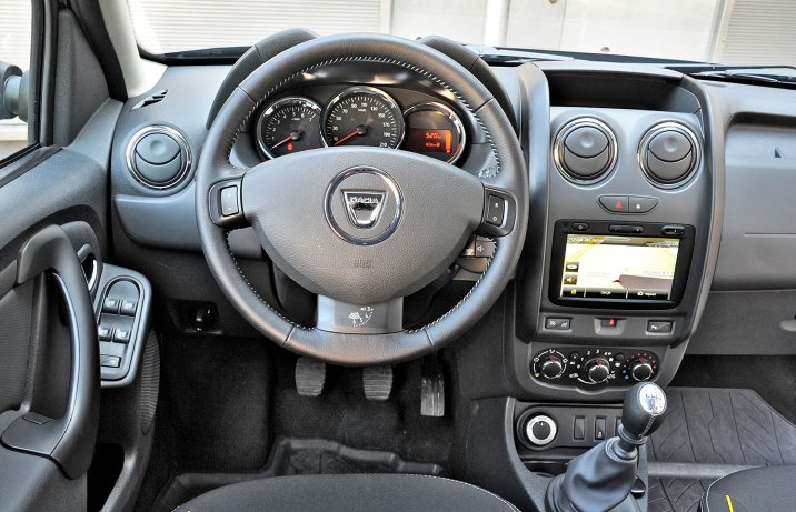 Plastiki we wnętrzu Dustera są niskiej jakości – tanie, skrzypiące i nieprzyjemne w dotyku. Kierowca może narzekać na drgania układu napędowego przenoszące się na pedały. Poza tym jest nieźle. Miejsca jest sporo, tapicerka jest wytrzymała, a deska rozdzielcza (po liftingu) ma półeczkę nad centralnymi nawiewami. Tańsze wersje nie mają podłokietnika, ale można go dołożyć.