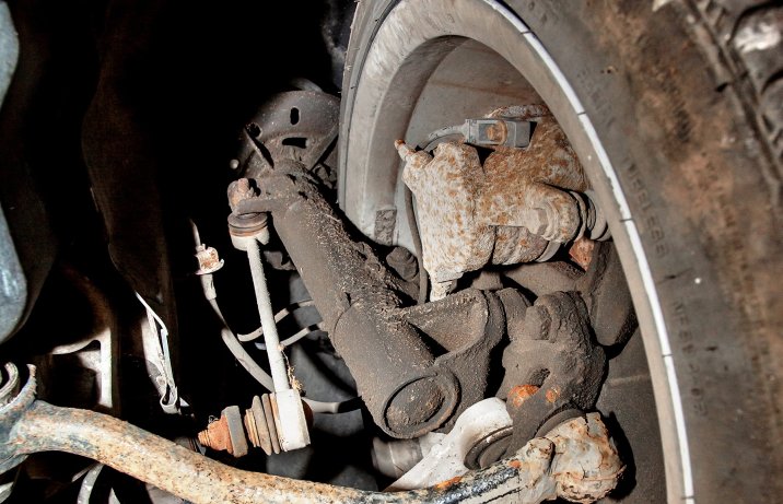 Szybko znaleźliśmy przyczynę stuków z zawieszenia. Oba przednie amortyzatory są wylane. Prawie rok temu na przeglądzie wykazały jednak wciąż niezłe tłumienie.