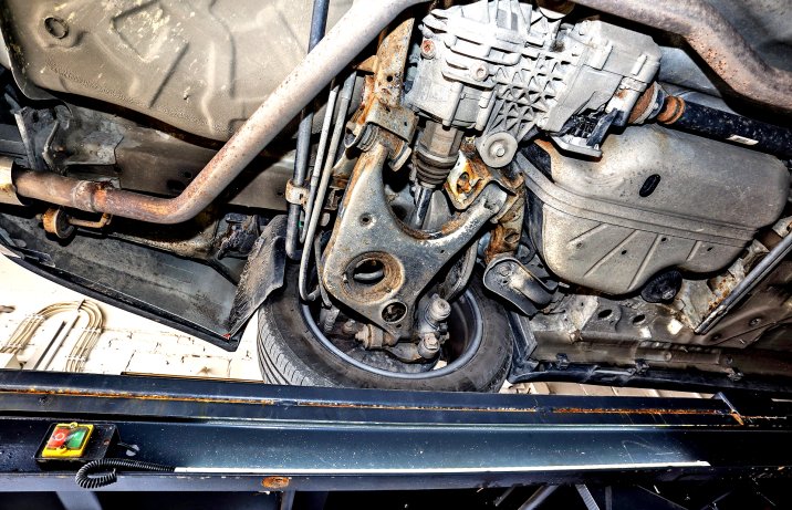 Ta Insignia wygląda od spodu w zasadzie tak samo jak opisywany przez nas w „Motorze” w 2019 roku egzemplarz z 2011 roku. Tamto auto było wówczas starsze, miało też o 100 tys. km większy przebieg. Dlatego w tym wypadku mamy prawo narzekać na wyraźne ślady korozji na płycie podłogowej. Choć ciężko jeszcze mówić o perforacji. Widać też wyciek oleju spomiędzy bloku a miski silnika. Dobrze prezentuje się za to zamontowany jako używany tylny dyferencjał. Wydech Insignii wygląda świetnie.