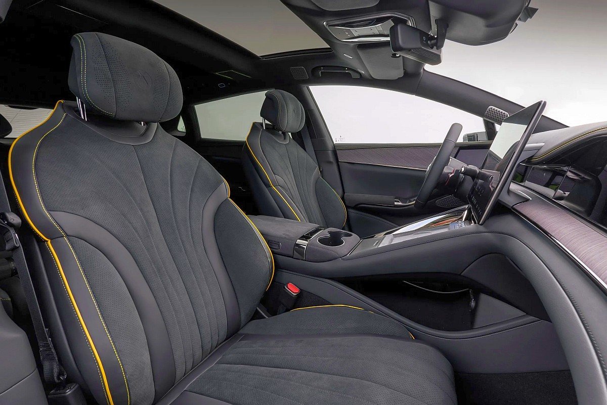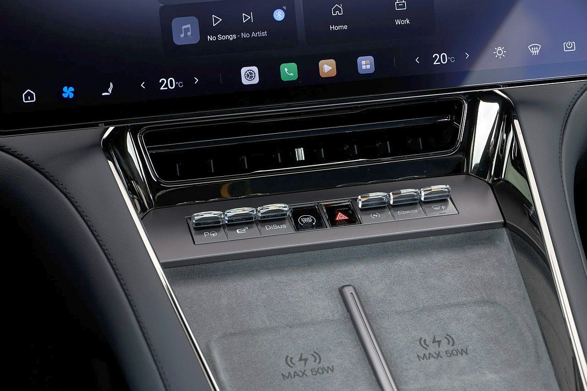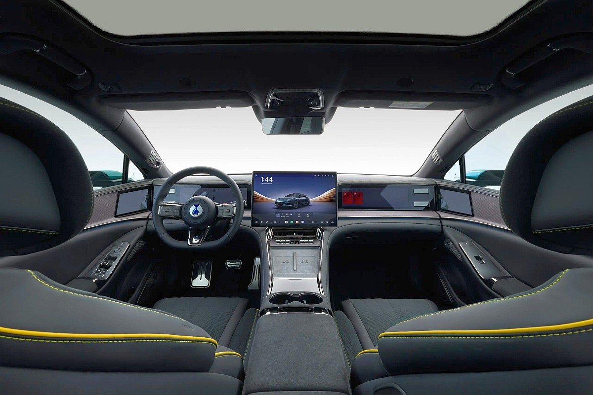 W kabinie Chińczycy postawili na połączenie cyfrowych rozwiązań z bogatym wyposażeniem. W konsoli centralnej znalazł się ekran o przekątnej 17,3”, a pasażerowie drugiego rzędu otrzymali wyświetlacz o przekątnej 13,2”. Na pokładzie są też chłodziarka w podłokietniku, ładowarka indukcyjna 50 W oraz 20-głośnikowy zestaw audio Devialet i Dolby Atmos o mocy 1150 W.