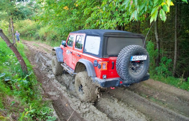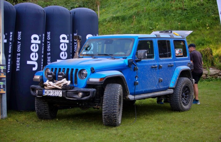 W tym roku wśród samochodów demonstracyjnych prym wiodły Jeep Wrangler 4xe z napędem hybrydowym plug-in oraz nowy Jeep Compass. Co ciekawe, jedna z załóg brała udział w zlocie właśnie Wranglerem 4xe, już przygotowanym do trudnych zmagań terenowych (po zakończonych próbach auto ładowało baterie pod sceną). I choć pierwotnie jego właściciel nie planował jazdy off-roadowej swoim nowym autem, szybko zmienił zdanie.