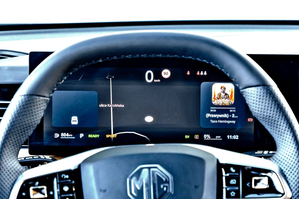 Na drodze MG pozytywnie zaskakuje dojrzałością układu jezdnego i w zasadzie nie odstaje od poziomu, który oferują europejscy czy koreańscy rywale. Zawieszenie pracuje harmonijnie i dobrze radzi sobie z tłumieniem nierówności. Prowadzenie nie jest zbyt angażujące, ale powiedzmy sobie szczerze – w hybrydowym SUV-ie po prostu nie musi. Istotniejsze, że auto jedzie pewnie i pozostaje neutralne w zakrętach.