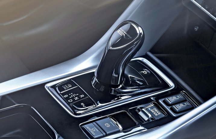 Przyciskami obok dźwigni można m.in. wybrać jedno z czterech ustawień pracy napędu 4x4, a także włączyć tryb jazdy elektrycznej (EV).
