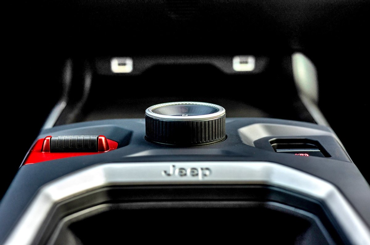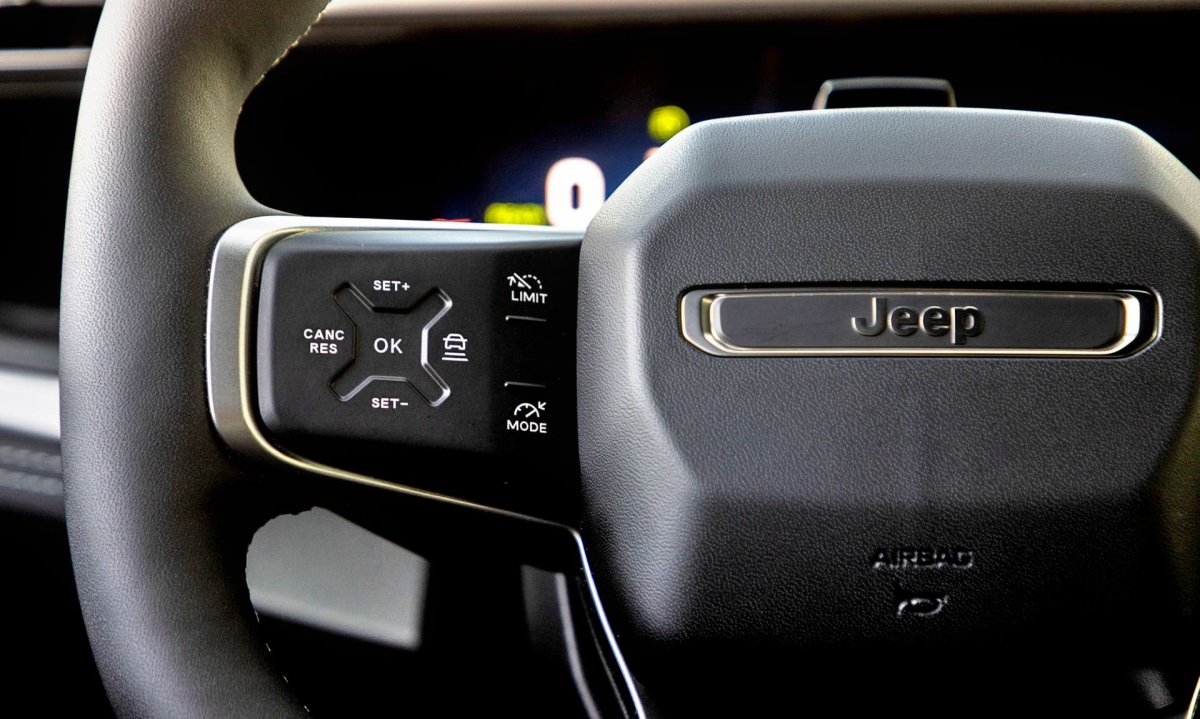 Na przyciskach do obsługi radia i aktywnego tempomatu znajduje się wgłębienie inspirowane przetłoczeniem kanistrów. / fot. Jeep