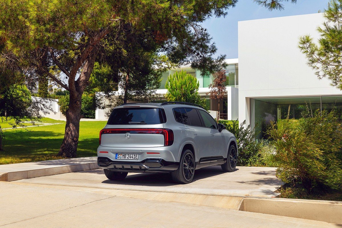 Przód nadwozia nowego GLB przywodzi na myśl większe GLC, zaś tył – ku zaskoczeniu – może budzić skojarzenia z modelami Kii. Wersje spalinowe wyróżnia tradycyjna osłona chłodnicy z chromowanymi gwiazdami i podświetlaną ramką. Elektryczne GLB EQ Technology otrzymało natomiast pełny panel z 94 podświetlanymi gwiazdkami, tworzącymi sekwencje powitalne.