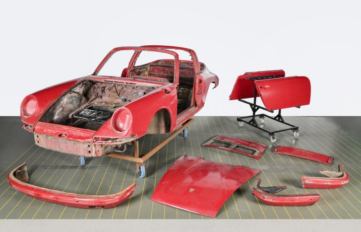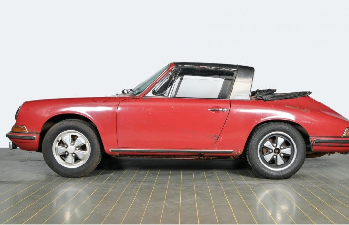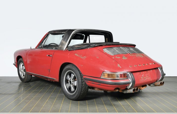 Ciekawe są losy czerwonej Targi – przez dwa lata służyła jako samochód demonstracyjny w salonie w Niemczech, po czym została kupiona przez klienta z USA. W 1977 r. odstawiono ją do otwartego garażu, gdzie zapomniana przestała pod plandeką do końca 2016 r. Znaleziona (w Long Beach w stanie Nowy Jork) i zakupiona przez kolekcjonera i miłośnika Porsche została przetransportowana z powrotem do ojczyzny, by w Porsche Classic przejść kompleksową restaurację. Samochód był kompletny i wyposażony w oryginalne, oferowane za dopłatą wyposażenie – m.in. ogrzewanie Webasto, skórzaną tapicerkę, przyciemnioną szybę, radio Blaupunkt Koln, reflektory przeciwmgielne czy zewnętrzny termometr. Dział Factory Restorations podczas odbudowy stara się zawsze tak wiernie, jak to tylko możliwe zachować oryginalność samochodu. Nawet gdyby wykorzystanie części produkowanych przez firmy zewnętrzne jako zamienniki ułatwiło sprawę – nie wchodzi w rachubę. Dużo wysiłku poświęcono na odtworzenie składanego dachu – klient nie chciał, by korzystać z aktualnie dostępnych materiałów, bo ich faktura jest inna. Dlatego pokrycie trzeba było wyprodukować specjalnie na potrzeby tego projektu. Podobnie było z malowaniem niektórych elementów podwozia czy silnika – zamiast wykorzystywanych dzisiaj, lepszych i trwalszych, rozwiązań zastosowano techniki, które obowiązywały w 1967 r.