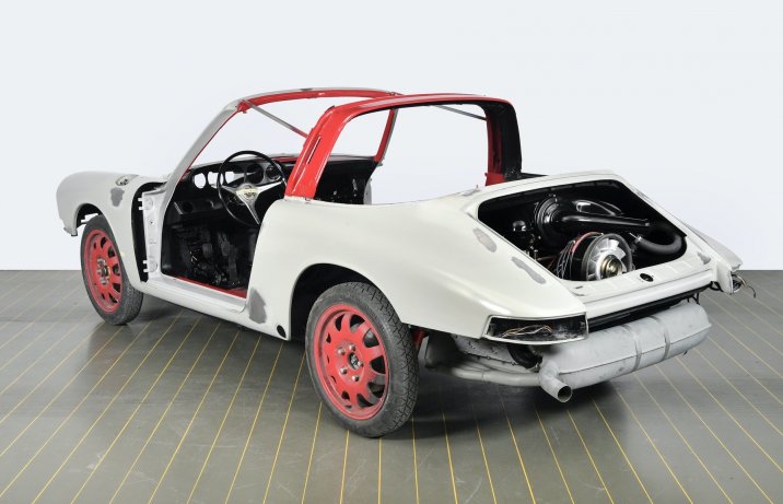Prezentowany egzemplarz to 911 S targa z krótkim rozstawem osi i miękkim tylnym oknem (w 1967 r. rozpoczęto oferowanie szklanej szyby) – takich wersji zbudowano jedynie 925, a ten konkretny samochód był pierwszą Targą w takiej specyfikacji przeznaczoną do sprzedaży w Niemczech (trafiła w styczniu 1967 r. do dilera w Dortmundzie). Warto w tym momencie przypomnieć podstawowe parametry 911 S Targi. Auto ma zaledwie 416 cm długości, 161 cm szerokości i 132 cm wysokości, a waży 1030 kg. Sześciocylindrowy boxer o pojemności 2 l rozwija 160 KM i 179 Nm, a napęd na tylne koła jest przekazywany za pośrednictwem 5-biegowej manualnej przekładni. 911 S Targa przyspiesza od 0 do 100 km/h w 7,6 s i rozpędza się do 225 km/h. W 1967 r. trzeba było za nią zapłacić 25 880 marek (o 1400 DM więcej niż coupe).