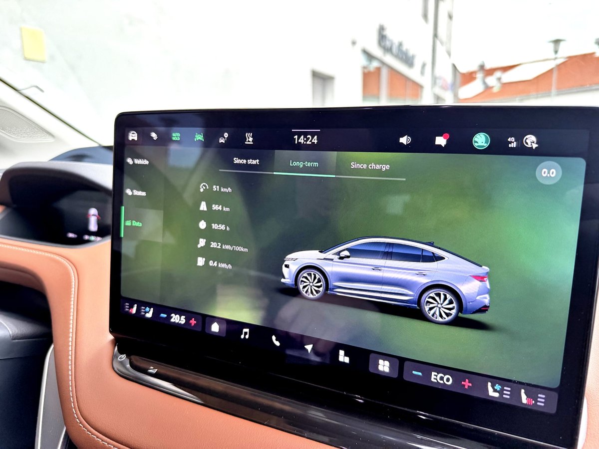 Pozytywnie można też ocenić zapotrzebowanie SUV-a Skody na energię. Na 300-kilometrowej trasie (głównie autostrady z ograniczeniem do 130 km/h i drogi lokalne) średnie zużycie kształtowało się na poziomie 18-20 kWh/100 km, a to niezły wynik.