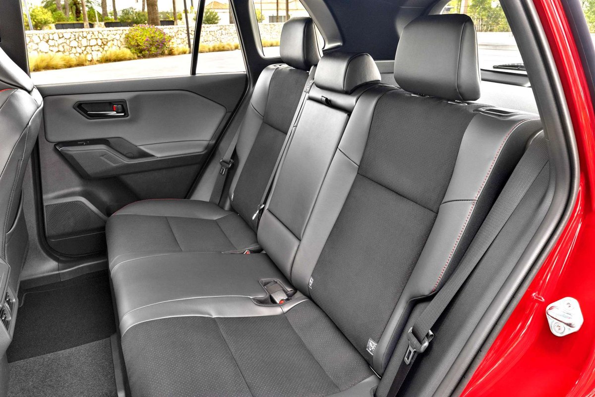 Miejsca jest sporo, ale bateria pod podłogą wymusza nieco nienaturalnie wysoką pozycję nóg pasażerów. / fot. Toyota
