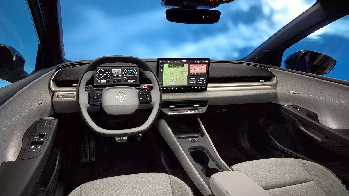 W kabinie ID. Polo postawiono na uproszczenie obsługi oraz fizyczne przyciski i pokrętła. Uwagę zwracają cyfrowe zegary z klasycznym rysunkiem prędkościomierza i obrotomierza, nawiązującym do Volkswagenów sprzed lat.