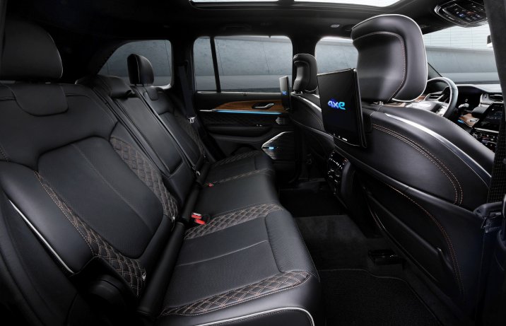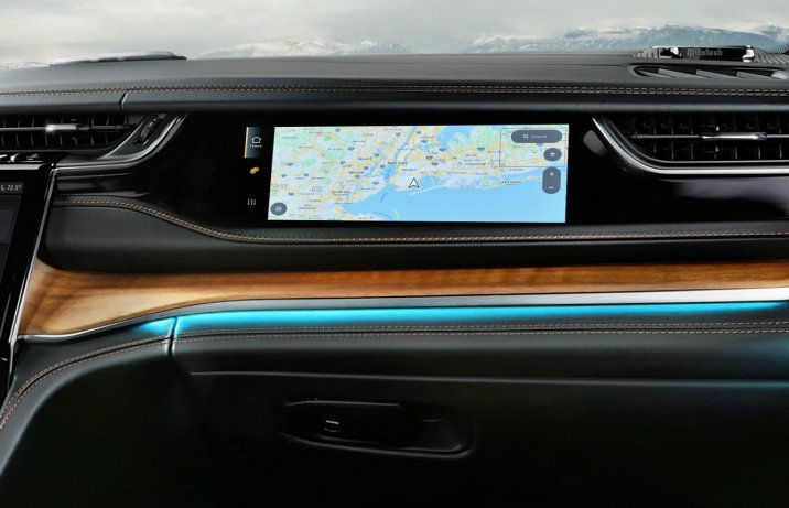 Radykalnie zmieniło się wnętrze Grand Cherokee. Ma być teraz przestronniejsze, ale także lepiej wykonane. Oczywiście najbardziej przyciąga uwagę całkiem nowa deska rozdzielcza. Cyfrowe wskaźniki oraz centralny ekran dotykowy mają przekątną 10,1 cala (25,6 cm), a dodatkowy wyświetlacz przed pasażerem – 10,25 cala (26 cm). Co ciekawe, obok zaawansowanych rozwiązań elektronicznych pozostawiono sporo przycisków do obsługi różnych funkcji i – przede wszystkim – tradycyjny panel klimatyzacji.